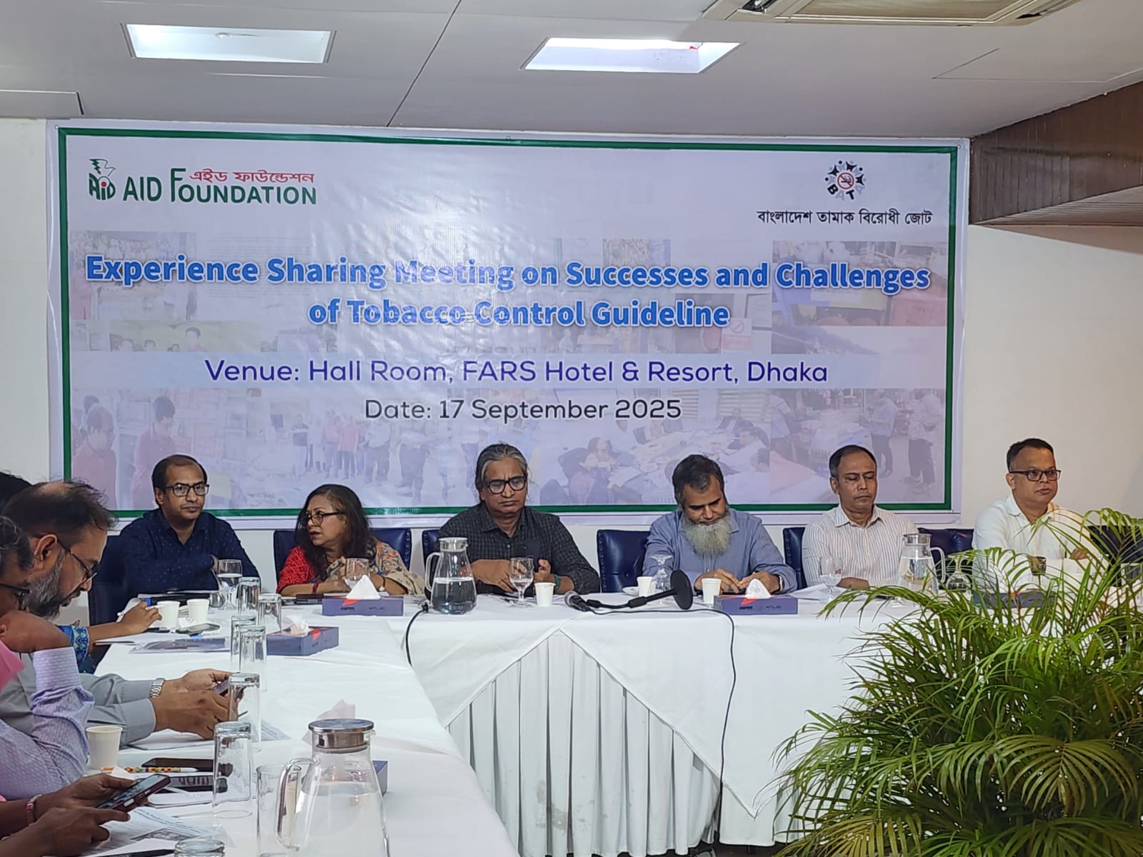 বুধবার ১৭ সেপ্টেম্বর সকালে রাজধানীর বিজয়নগরের ফার্স হোটেলে বেসরকারি সংস্থা এইড ফাউন্ডেশনের আয়োজনে “স্থানীয় সরকার প্রতিষ্ঠানের তামাক নিয়ন্ত্রণে নির্দেশিকা বাস্তবায়নের সফলতা ও চ্যালেঞ্জ: অভিজ্ঞতা বিনিময়” শীর্ষক সভায় বক্তারা এসব তথ্য তুলে ধরেন। সভায় সভাপতিত্ব করেন বাংলাদেশ তামাক বিরোধী জোটের সমন্বয়ক সাইফুদ্দিন আহমেদ।