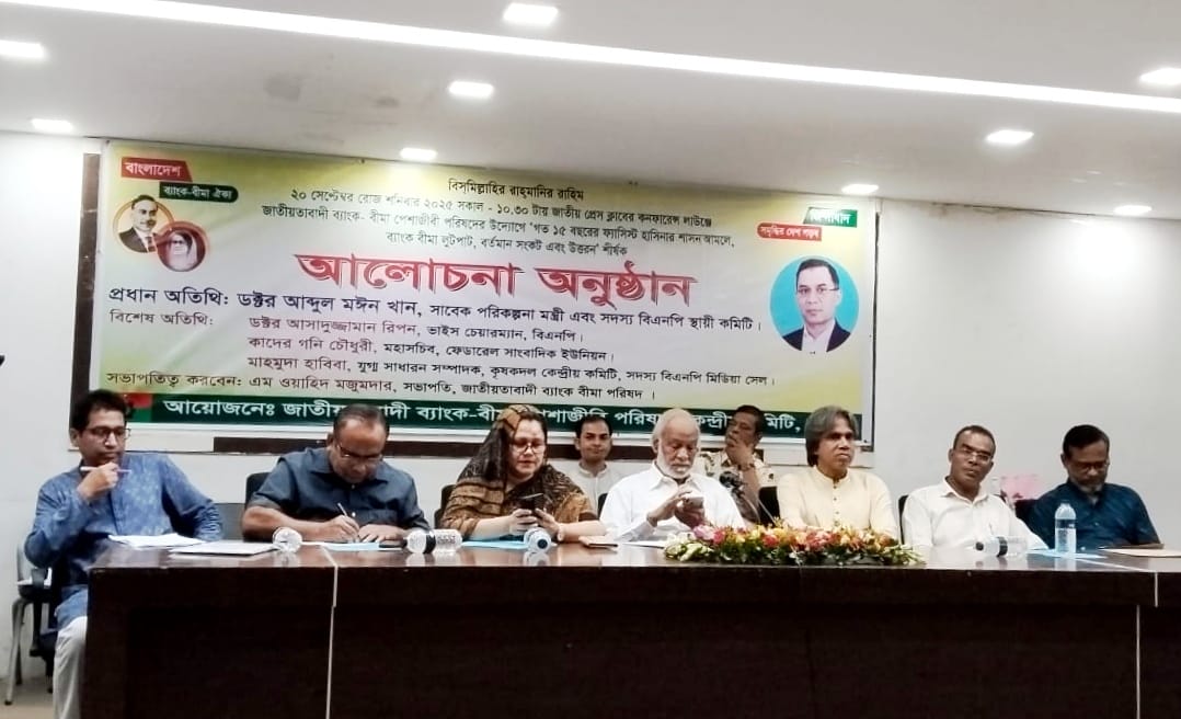মাখদুম সামি কল্লোল: রাজধানীর জাতীয় প্রেসক্লাবে শনিবার (২০ সেপ্টেম্বর) সকালে এক আলোচনা সভায় বক্তারা বলেছেন, গত দেড় দশকে আওয়ামী লীগ সরকারের শাসনামলে দেশের ব্যাংক ও বীমা খাত অভূতপূর্ব লুটপাট ও সংকটে নিমজ্জিত হয়েছে। জাতীয়তাবাদী ব্যাংক-বীমা পেশাজীবী পরিষদের উদ্যোগে আয়োজিত এ আলোচনা সভায় প্রধান অতিথি ছিলেন বিএনপির স্থায়ী কমিটির সদস্য ও সাবেক পরিকল্পনা মন্ত্রী ড. আব্দুল মঈন খান।