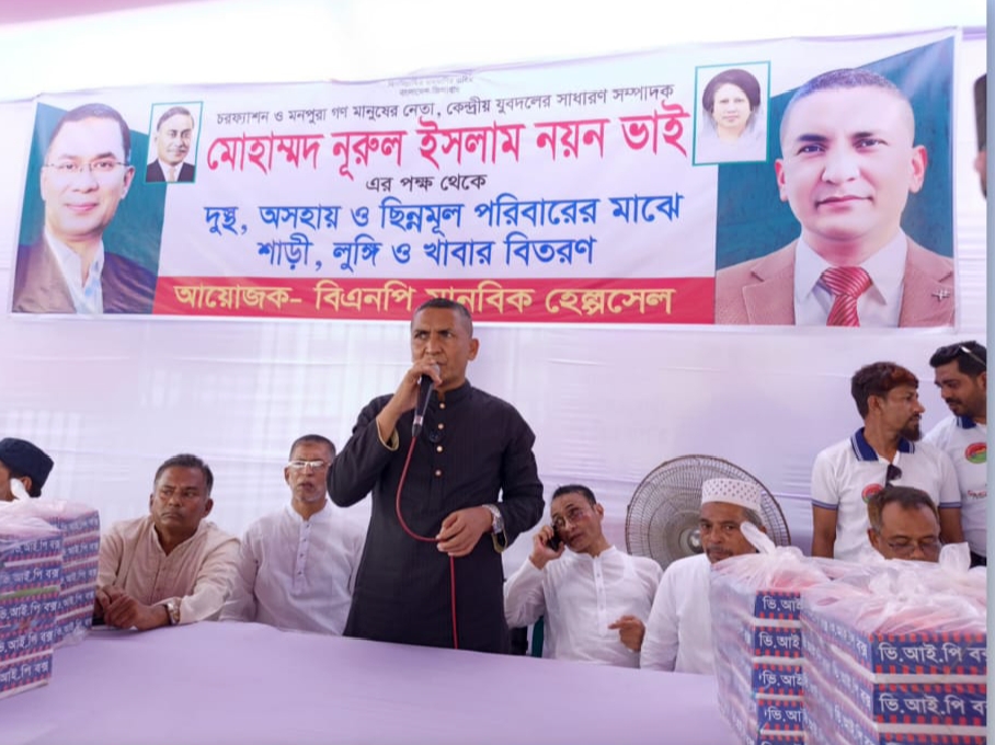 বৃহস্পতিবার (২৩ অক্টোবর) দুপুর ২টায় চরফ্যাশন উপজেলা সদর ফ্যাশন স্কয়ারে বিএনপি হেল্প সেলের উদ্যোগে দুস্থ, অসহায় ও ছিন্নমূল ৩০০ মানুষের মধ্যে শাড়ি, লুঙ্গি ও খাবার বিতরণ অনুষ্ঠানে প্রধান অতিথির বক্তব্যে তিনি এসব কথা বলেন।
