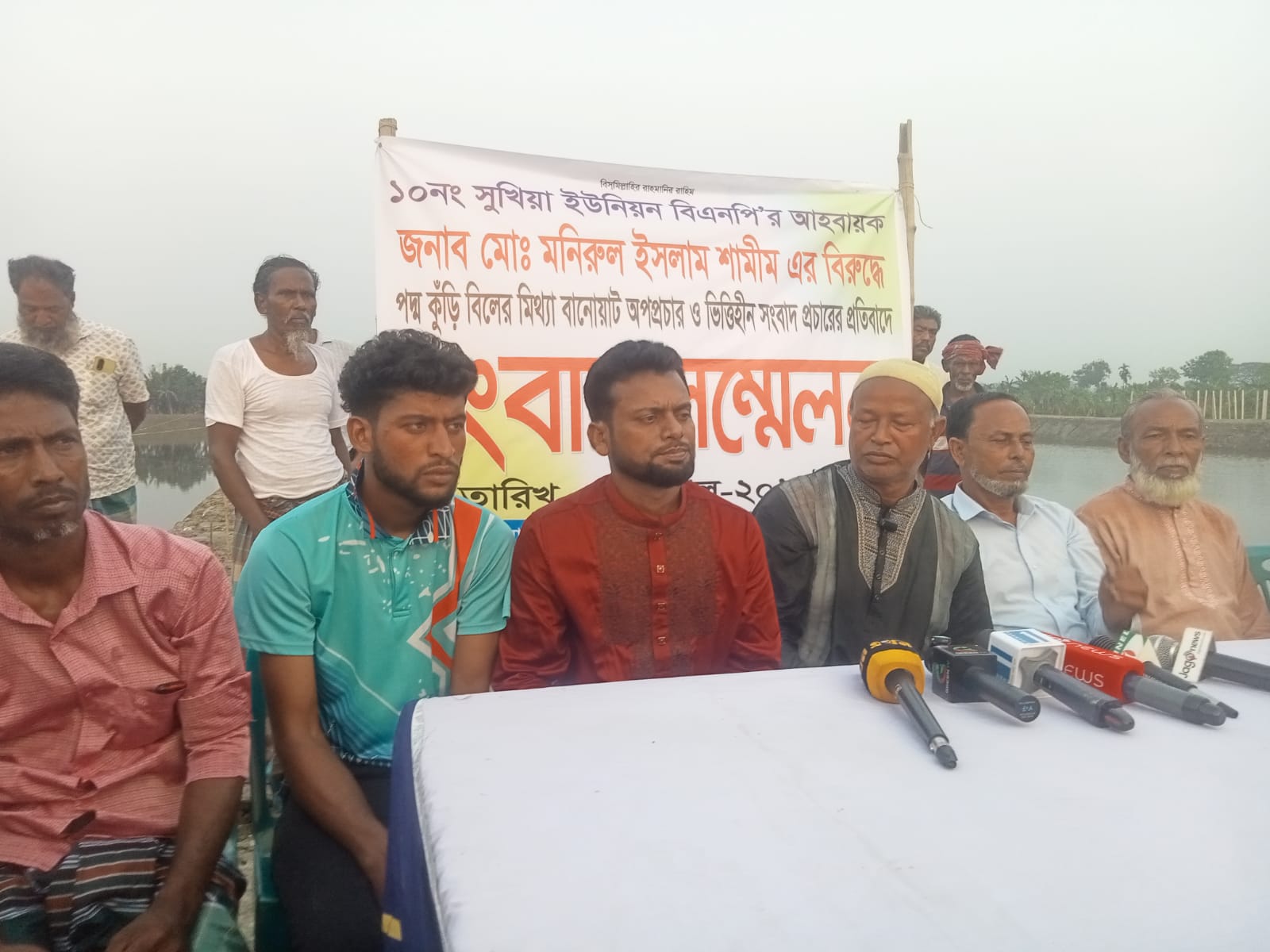 লিখিত বক্তব্যে মনিরুল ইসলাম শামীম বলেন, সুখিয়া ইউনিয়নের ছয়চির গ্রামের হিমেল আহম্মদ (৩০), নজরুল ইসলাম (৪৮), মামুন (৩০), মুখলেছ (৬০), মিলন মিয়া (৬০), মামুন (৩৫), শামসুল হক (৪৮)সহ অজ্ঞাতনামা আরও ১০–১৫ জন তার পদ্মকুড়ি বিল এলাকার ফিশারী ও পোল্ট্রি খামারের বিরুদ্ধে ষড়যন্ত্রমূলক কর্মকাণ্ড চালাচ্ছে।