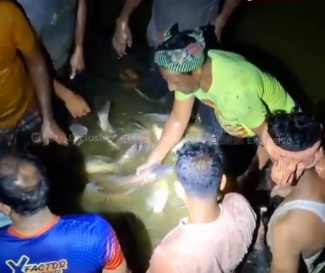 প্রত্যক্ষদর্শীরা জানান, প্রায় দুই টন মাছ ধরা হয়েছে, যার মধ্যে কাতল, রুই, চিতল, আইড় ও পাঙাশ ছিল। কিছু মাছ স্থানীয় ব্যবসায়ীদের কাছেও বিক্রি করা হয়েছে বলে জানা গেছে।