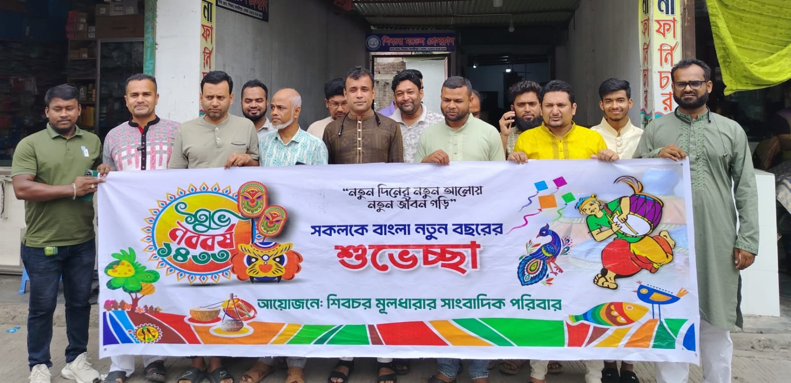 শাখাওয়াত হোসেন মোল্লা, শিবচর (মাদারীপুর) প্রতিনিধি:মা দারীপুরের শিবচর উপজেলায় বর্ণাঢ্য আয়োজনের মধ্যে দিয়ে পহেলা বৈশাখ শুভ নববর্ষ উদযাপন শিবচর মূলধারা সাংবাদিক পরিবারের। বাংলা নববর্ষ ১৪৩৩ উপলক্ষে পহেলা বৈশাখ বরনের মধ্যে দিয়ে, নানা আয়োজনে প্রথম দিনে উৎসব মুখর পরিবেশে ব্যস্ত সময় কাটালেন শিবচরের মুলধারার সাংবাদিক পরিবার।এই আয়োজন ছিল আনন্দ, সম্প্রীতি ও ঐতিহ্যের এক মিলনমেলা।