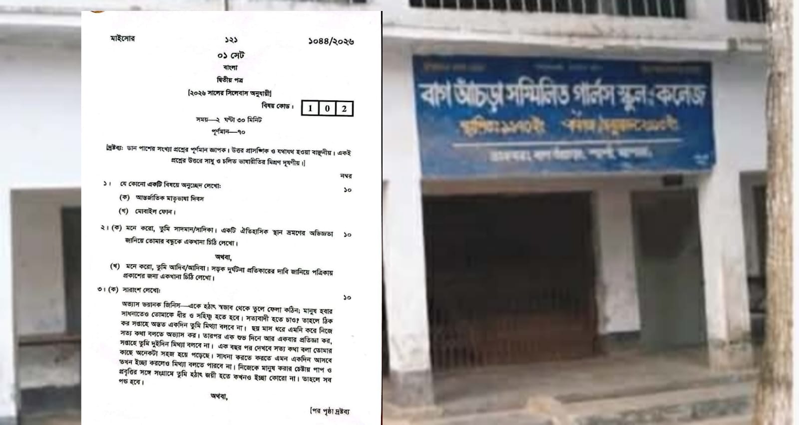 যশোরের শার্শায় গত বছরের সিলেব্যাসের প্রশ্নে বাংলা ২য় পত্রের পরিক্ষা: বিপাকে ১২ শিক্ষার্থী