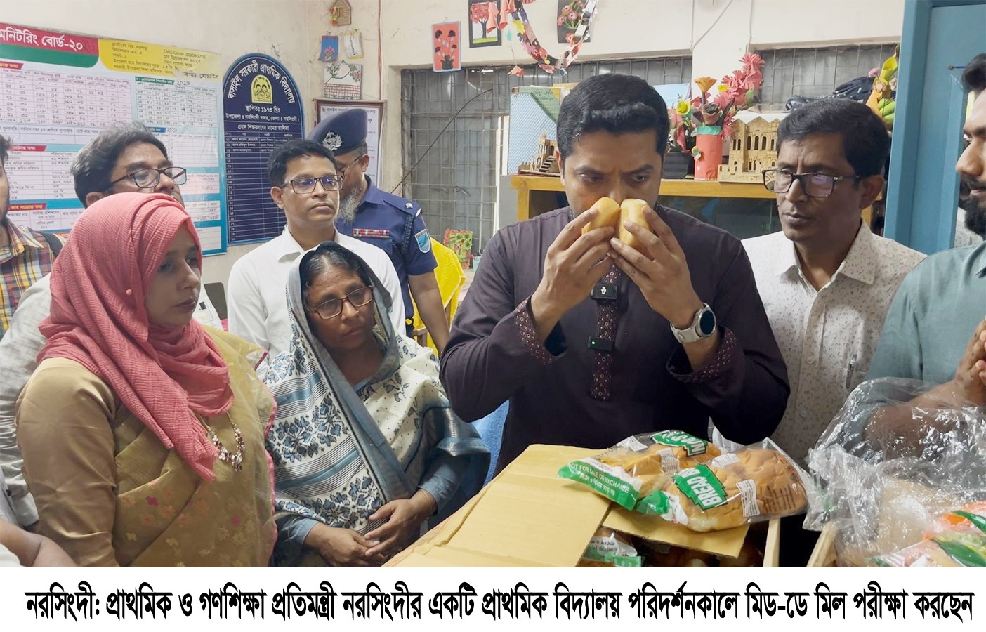 নরসিংদীতে স্কুল পরিদর্শনে গিয়ে মিড ডে মিলের খাবারে গন্ধ পেলেন প্রতিমন্ত্রী স্যাম্পল পাঠালেন ল্যাবে
