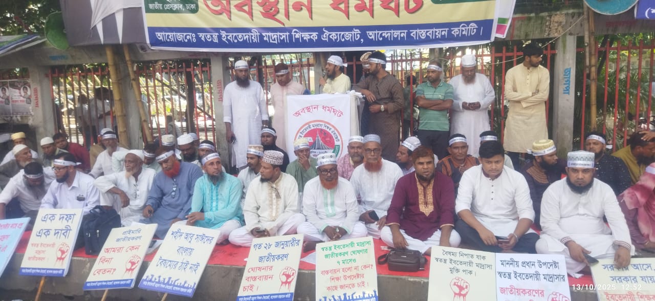 স্বতন্ত্র ইবতেদায়ী মাদরাসা শিক্ষকদের লাগাতার অবস্থান ধর্মঘট