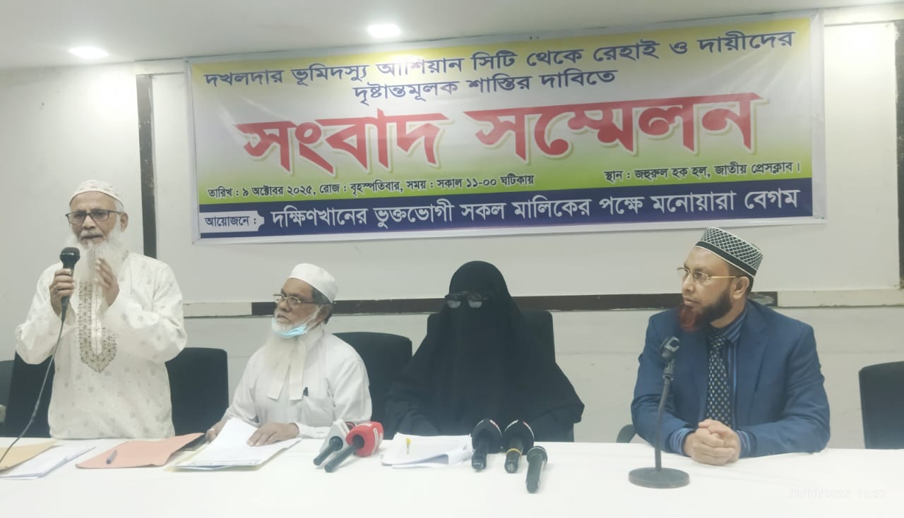 দক্ষিণখানে আশিয়ান সিটির ভূমি দখল ও সন্ত্রাসী আগ্রাসনের প্রতিবাদে সংবাদ সম্মেলন